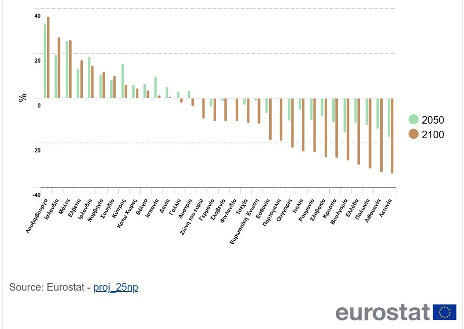 • Δημογραφικός εφιάλτης για την Ελλάδα: Στα 7,3 εκατομμύρια ο πληθυσμός της το 2100 σύμφωνα με τη Eurostat