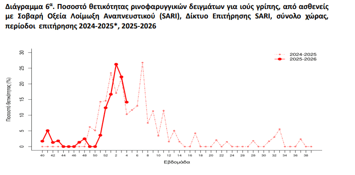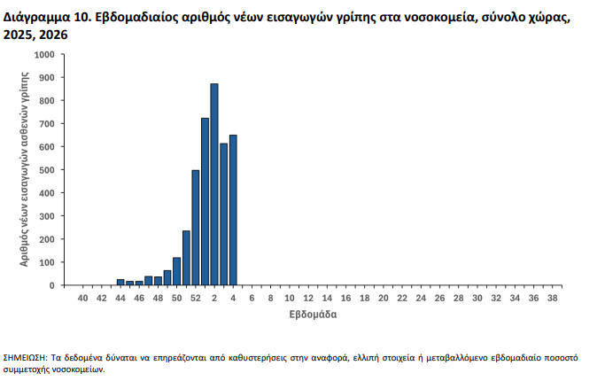 - Αύξηση Εισαγωγών: Οι νέες εισαγωγές λόγω γρίπης ανήλθαν σε 649, σημειώνοντας άνοδο από τις 613 της προηγούμενης εβδομάδας.