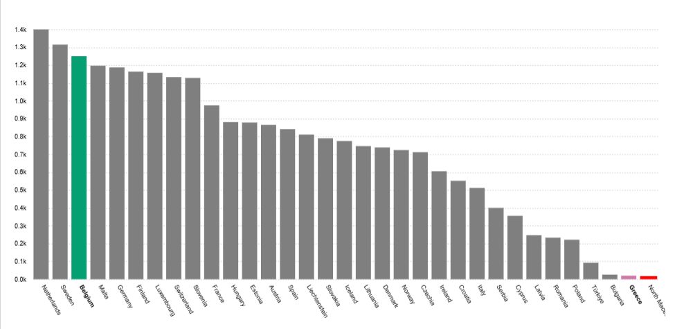 Πρέπει να επισημανθεί ωστόσο ότι το 2023 αρκετές χώρες του ευρωπαϊκού βορρά διαθέτουν λιγότερες από 300 νοσοκομειακές κλίνες ανά 100.000 ανθρώπους: Η Σουηδία διαθέτει μόλις 187, η Ολλανδία 231, η Δανία 233, και η Φινλανδία 260.