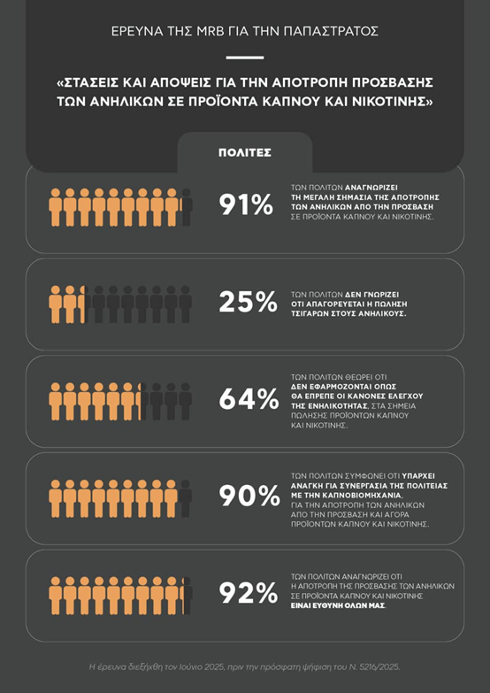 • Το 91% των πολιτών και το 98% των λιανοπωλητών θεωρούν εξαιρετικά σημαντική την αποτροπή πρόσβασης ανηλίκων σε προϊόντα νικοτίνης.