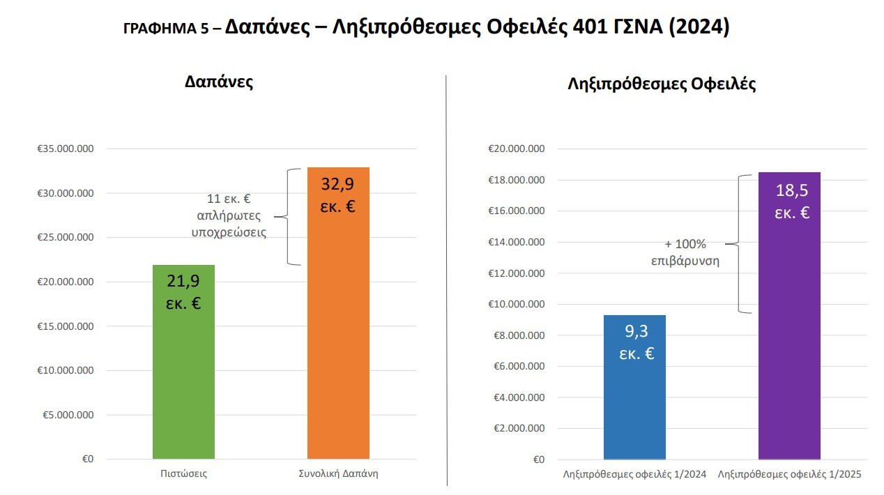 Σε ότι αφορά τα οικονομικά των νοσοκομείων ο κ. Δένδιας σημείωσε ότι το πρόβλημα δεν είναι ότι δεν πληρώνονται τα οφειλόμενα από τον ΕΟΠΥΥ αλλά ότι δεν υπάρχει κανένα απολύτως οικονομικό σύστημα. «Ο ΕΟΠΥΥ έδωσε το διάστημα 2020-2023 80,1 εκατομμύρια. Από αυτά όμως στα στρατιωτικά νοσοκομεία έμειναν τα 51,7, καθώς τα 28,4 πήγαν για εισφορές σε ταμεία» αποκάλυψε ο υπουργός Εθνικής  Άμυνας.