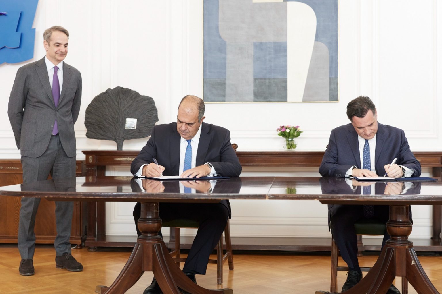 «Το κοινό καλό προϋποθέτει την ένωση δυνάμεων του κράτους, της πολιτείας, της κοινωνίας των πολιτών και σημαντικών επιφανών επιχειρηματιών, οι οποίοι αισθάνονται την ανάγκη να προχωρήσουν σε τέτοιες κινήσεις», επισήμανε ο Κυριάκος Μητσοτάκης.
